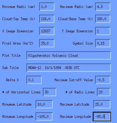 The Cloud-Top Temperature can be determined by looking at the AVHRR band 4 temperature of the opaque part of the volcanic cloud. The opaque part of the volcani cloud is the optically thick part where the underling radiation does the pass through the cloud. The opaque part of the cloud is located nearest the volcanoe vent since large aresols have not fallen out yet.