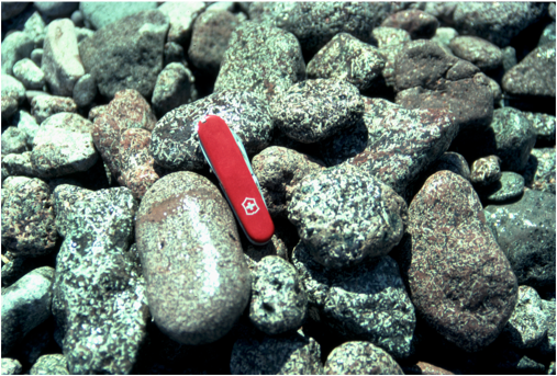 The thickest lava flows in the Keweenawan Portage Lake Volcanics contain horizons called “pegmatites”, “pegmatoids” or “dolerites”. The following description of these features is from Longo (1984):