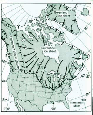 This hypothesis says that much of the continent of North America was covered by glacial ice that was 2 miles thick and which extended over much of the midwest. The idea of Continental Glaciation came from Louis Agassiz in 1840. He was Swiss, and so he knew glaciers well. When he came to America, he found only mountain glaciers in the west, but he saw many features which he knew from Switzerland and which were associated with glaciers (eskers, moraines, outwash, kettle lakes, drumlins, kame terraces).