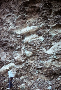 Pillow lavas are very common rocks in the Archean. They form when basaltic eruptions occur under water or ice. They are a significant part of the shields of continental cratons and especially greenstone belts. Near Marquette they are conspicuous in the Mona Schist along US 41 west of Marquette. It is valuable to use the geometry of pillows to find out what the attitude of rocks is (Which way is “up”?). Not which is up now, but which way was up then. Pillows seem to give clear up and down information, as pillows that are younger flow over and mold them selves as they fill the gaps between older ones.