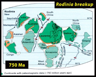 The arrangement of Earth’s continents is a major influence on global climate change. Rodinia was a giant continent located in a equatorial region during the Keweenaw rift, but it drifted to the south pole region from 1 by to about 600 my ago. When a continent is in a polar region, ice tends to cover it, as is the case in Antarctica today. Rodinia also rifted apart and formed many small continents beginning about 750 my ago. It is likely that the polar position of Rodinia was an important reason for Snowball Earth.