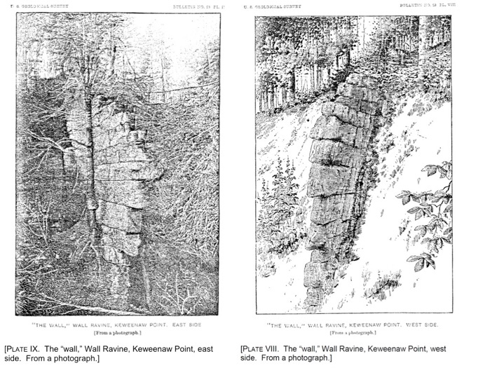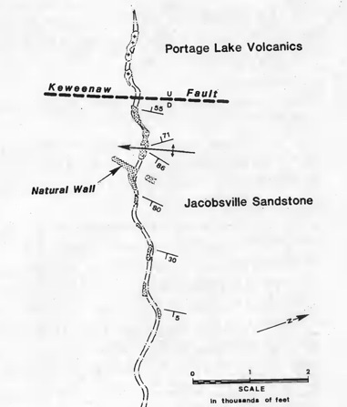 A famous geological spot, the Natural wall is a resistant bed of the Jacobsville Sandstone, turned on its side, to near vertical.