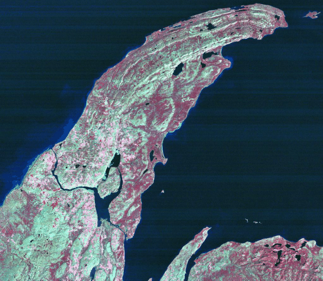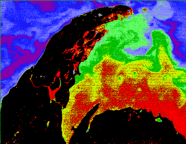 energyTo produce a true color image , the red satellite data (band3) is put in the red component of the color monitor, the green satellite data (band 2) is put in the green component of the color monitor, and the blue satellite data (band 1) is put in blue. Here is an example of a true color image.