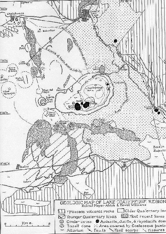 The image below is taken from "Los Volcanes Activos de Guatemala y El Salvador" written by Helmut Meyer-Abich in 1956, as shown in a geologic map of Lake Coatepeque which includes Santa Ana and Izalco volcanoes.