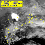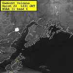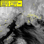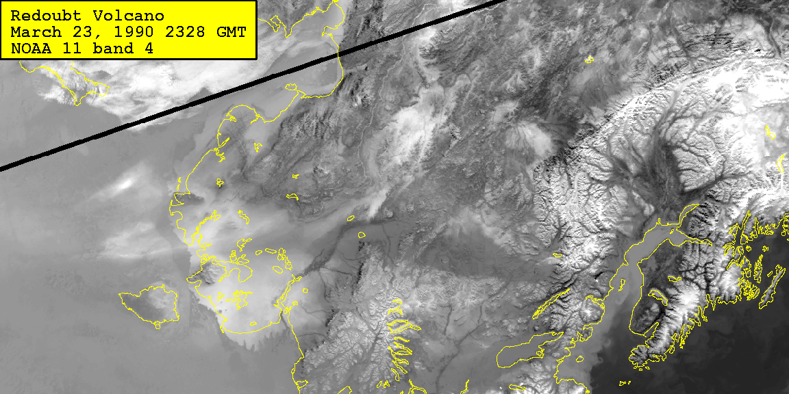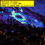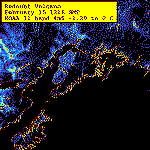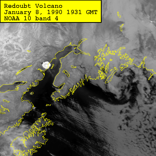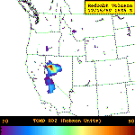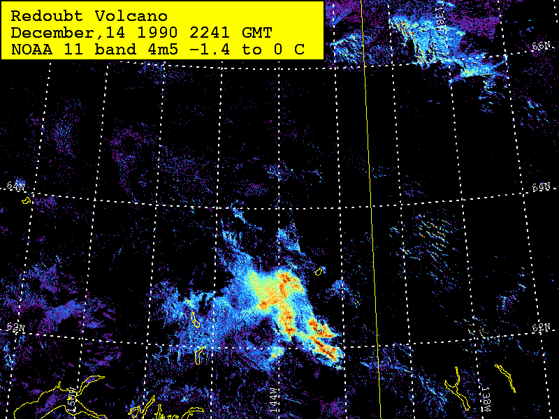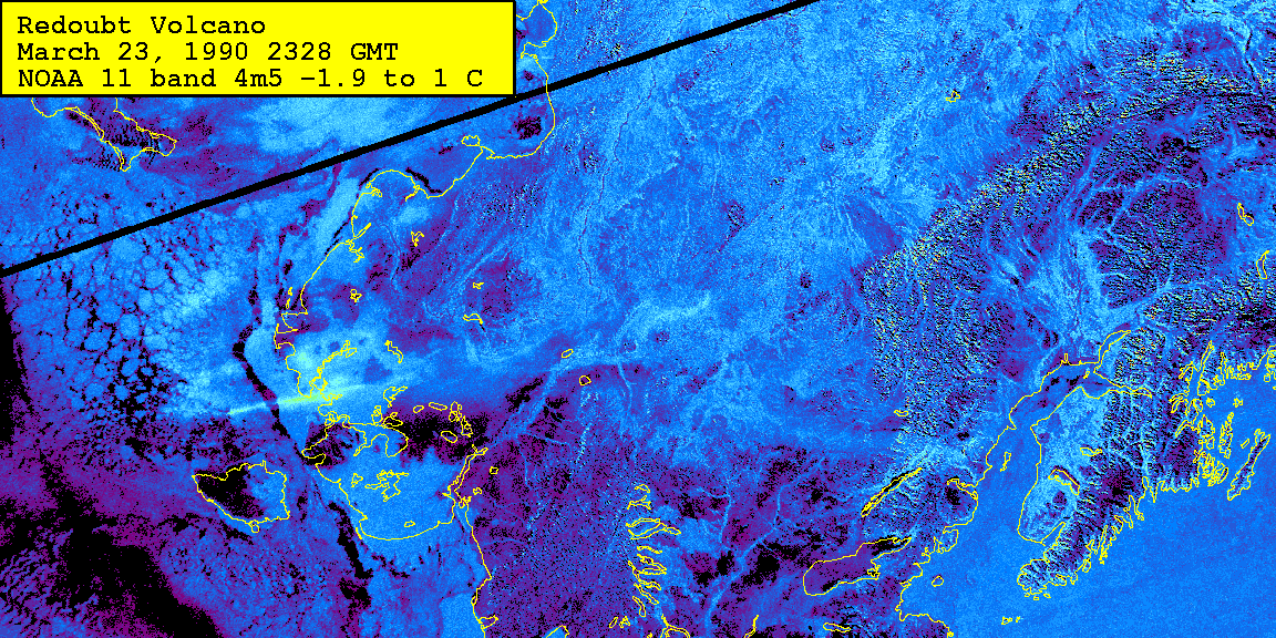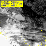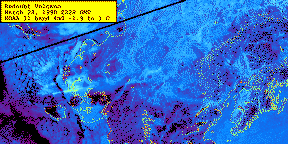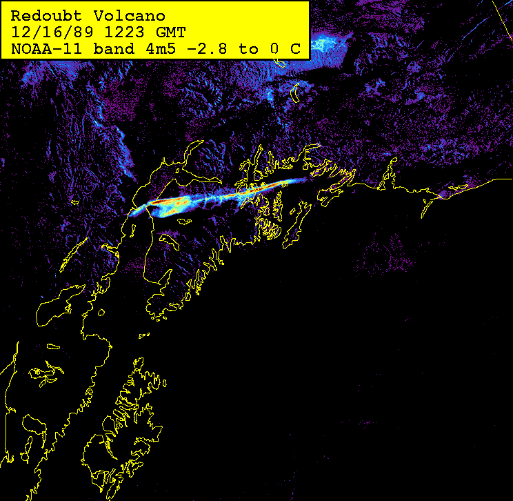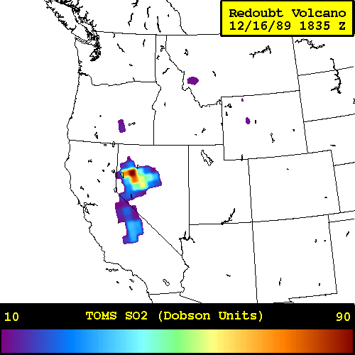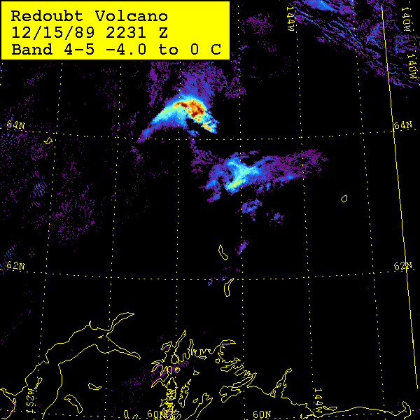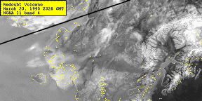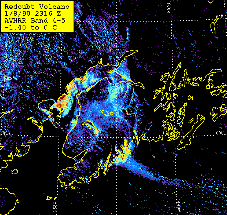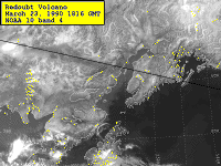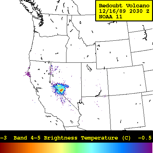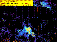 Images: left TOMS SO2 cloud at 1835Z, right AVHRR Band 4-5 at 2030Z