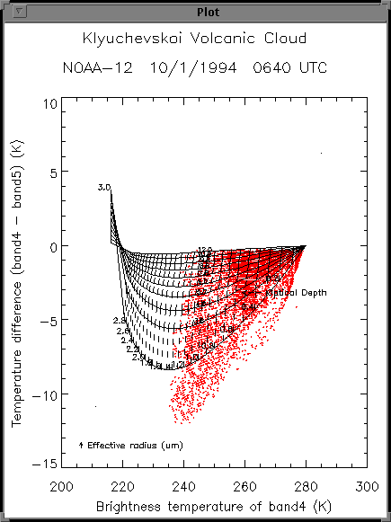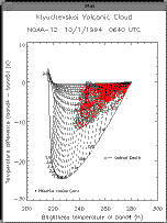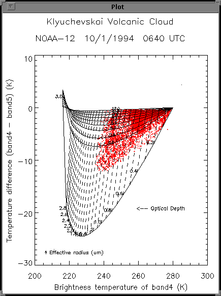 shown above. The red dots are the actual AVHRR pixel values for the cloud, the